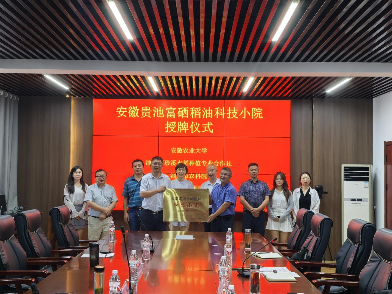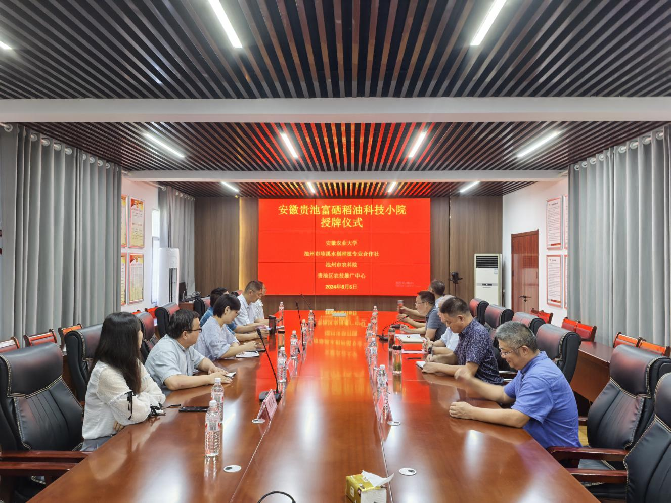 2024年8月6日,凯发k8贵池富硒稻油科技小院揭牌仪式在池州市贵池区梅村镇政府会议室举行。池州市农业科学院院长朱永胜、贵池区农业农村局农业技术推广中心主任刘道贵、贵池区梅村镇政府副镇长徐根楼、池州市珍溪水稻种植专业合作社负责人周方,凯发k8农业大学植物保护学院党委书记刘柳、副院长唐庆峰、科技小院首席专家李淼等出席揭牌仪式。