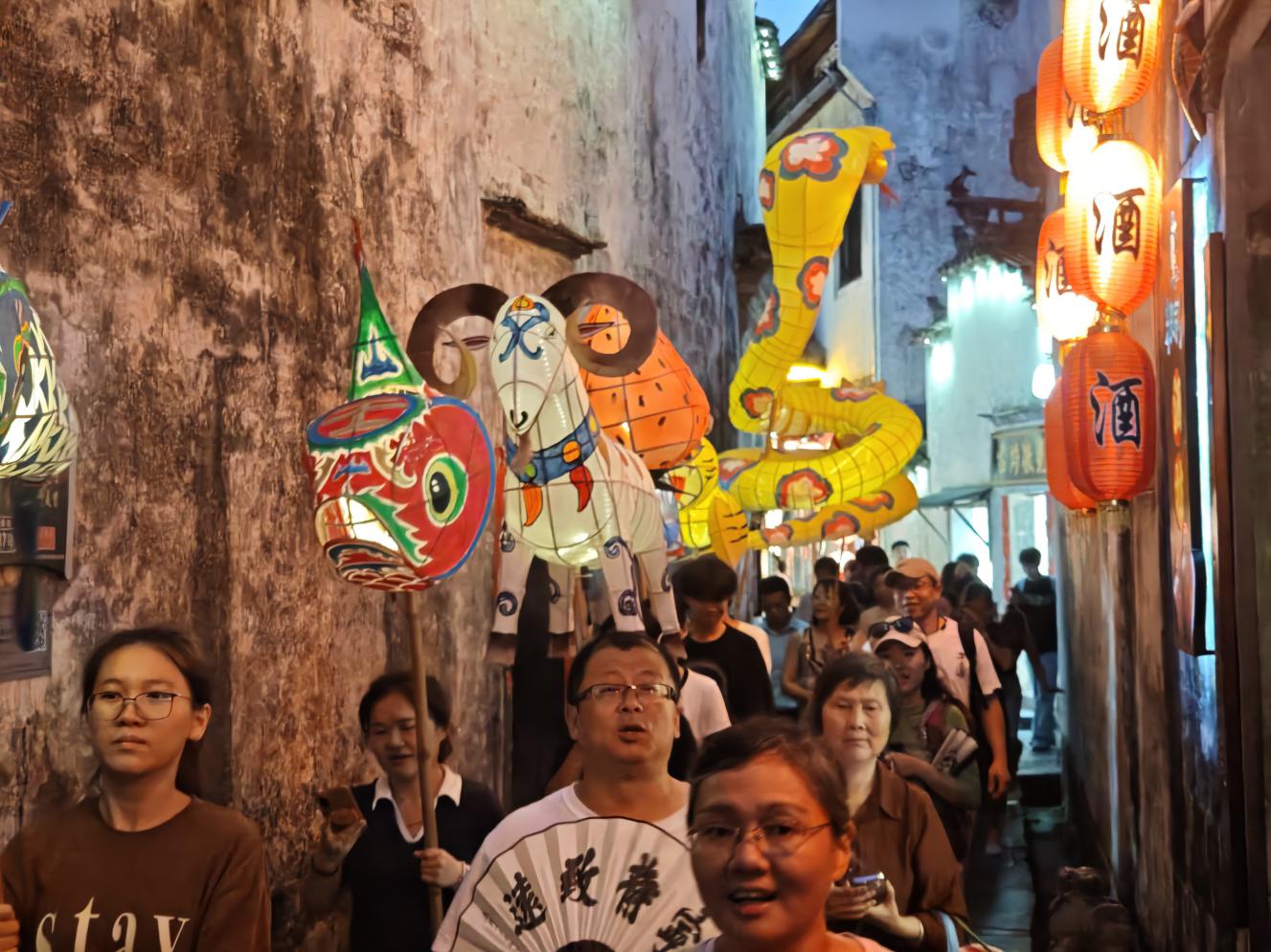 “业”态深耕中见文化底蕴。西递村深挖文化底蕴,将传统民俗与旅游体验深度绑定,让板凳龙这一经典活动焕发新生,成为游客沉浸式感受传统文化的重要载体。每当锣鼓声起,村民与游客手手相牵,一节节流光溢彩的板凳龙在古巷中蜿蜒游走,龙身摆动间,欢笑声与鼓点共振,既让千年民俗“活”起来,更让游客沉浸式触摸文化根脉,成为西递响当当的“打卡项”。