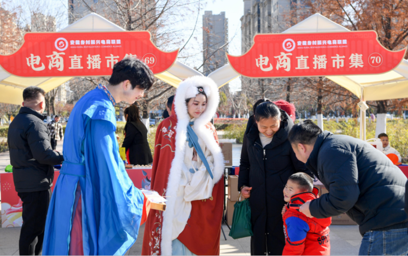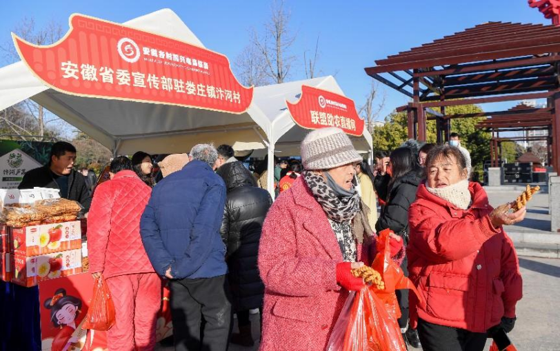 活动现场,驻村第一书记们化身助农推荐官,把老乡家的土特产搬上展位,大声吆喝;“村播”达人们,将灵璧农文旅工等特色产品带进直播间,网友发出“买它买它”评论。